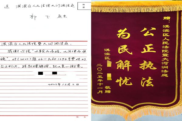 一面锦旗传敬意,一纸书信寄真情。12月3日,淇滨区法院大河涧法庭收到了当事人送来的锦旗和感谢信,字里行间洋溢着当事人对法官最真挚、最质朴的敬意。