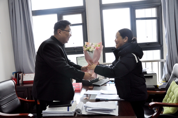 为了表达对这些坚守岗位女干警的敬意和感谢,院领导带着一束束精心挑选的鲜花和一张张充满温情的祝福卡片,走进了各个加班岗位。“大家辛苦了,三八节快乐!”每到一处,院领导都亲手将鲜花送到女干警手中,亲切地与她们交谈,感谢她们为法院工作的辛勤付出。接过鲜花的女干警们脸上洋溢着幸福的笑容,纷纷表示这是她们收到的最特别、最温暖的节日礼物。
